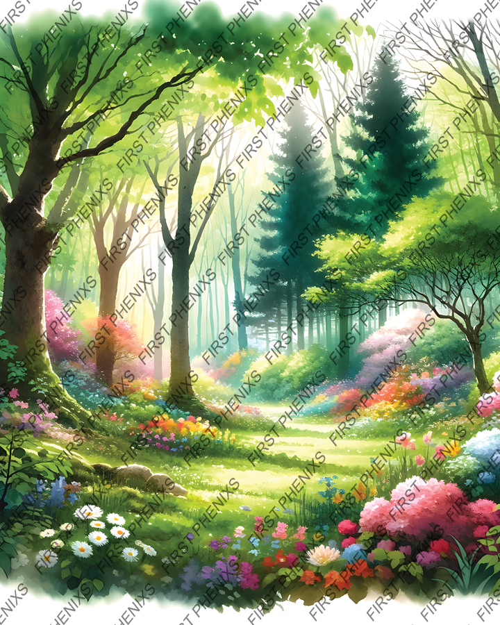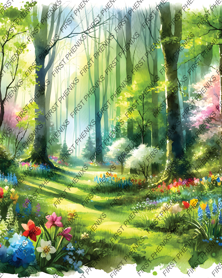 Enchanted Forest Watercolor, Spring Bloom Wall Art, Tranquil Woodland Decor, Nature Inspired Home